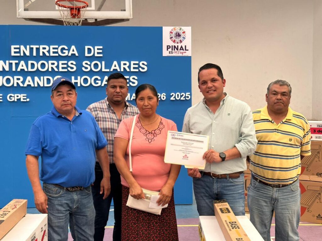 Con la finalidad de que más familias pinalenses accedan a una mejor calidad de vida, el Ing. Iván Zárate Muñoz, presidente del DIF Municipal, encabezó la entrega de calentadores solares subsidiados del programa “Mejorando Hogares”, gestionado en coordinación con la Congregación Mariana Trinitaria y la Dirección de Desarrollo Social y Económico. En representación de la alcaldesa Lupita Ramírez Plaza, Zárate destacó que “cuando hay voluntad de colaborar entre gobierno, sociedad y asociaciones civiles, es posible acercar soluciones concretas a quienes más lo necesitan”.