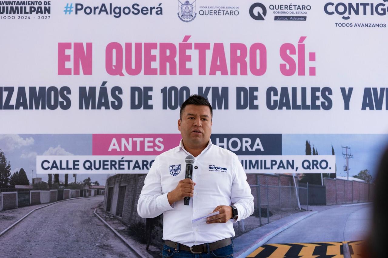 En su mensaje, Jairo Morales destacó que gracias al trabajo coordinado con el Gobierno del Estado, en Huimilpan se han ejecutado 108 obras durante la actual administración, logrando que cerca del 80 por ciento de las comunidades cuenten al menos con una acción de infraestructura.