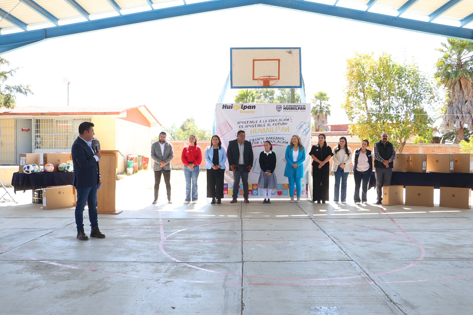 Entre los apoyos entregados destacan computadoras y laptops que contribuirán a mejorar el desarrollo académico y el desempeño escolar de las y los alumnos, al facilitar el acceso a herramientas tecnológicas para el aprendizaje. Asimismo, se entregaron computadoras de escritorio, bocinas y balones de fútbol, además de apoyos gestionados para la institución como trabajos de pintura, impermeabilización, mejora de sanitarios y fortalecimiento de espacios escolares.