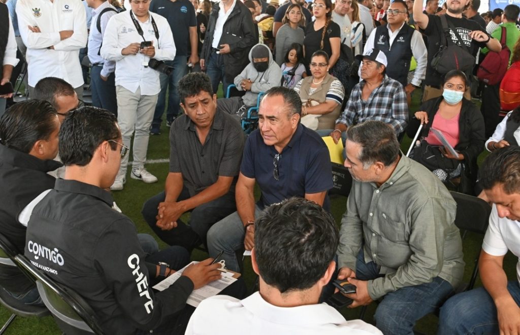 El gobernador, Mauricio Kuri González, en compañía del presidente municipal de Corregidora, Roberto Sosa Pichardo, encabezó la jornada Aquí Contigo en el parque de la colonia Misión San Carlos, ahí escuchó las diversas peticiones ciudadanas en materia de agua, apoyos sociales, educación, salud, y servicios públicos.