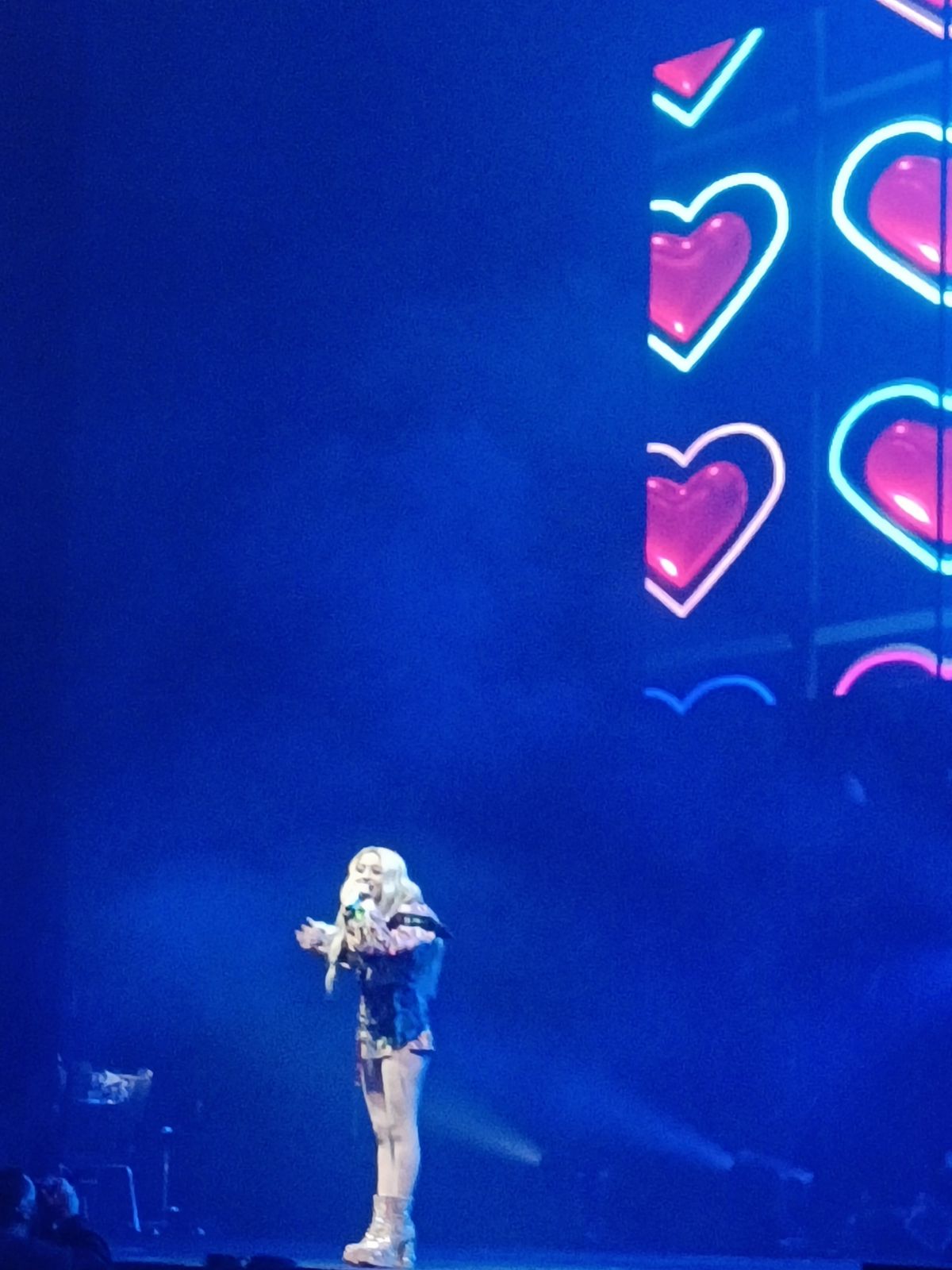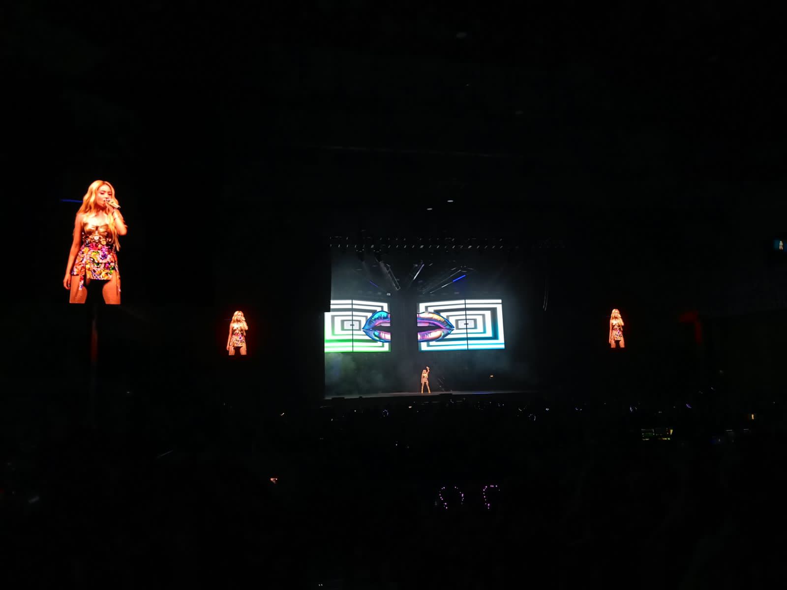 Desde el inicio, la producción presentó errores: la iluminación no estaba bien ajustada y el «seguidor» no lograba enfocarla correctamente, por lo que a menudo la cantante quedaba fuera de foco. Durante los cambios de vestuario, que superaron los diez, el escenario se quedaba en completa oscuridad o con escasa iluminación, generando pausas de hasta dos minutos en los que no sucedía nada. En ocasiones, la luz roja en exceso dificultaba ver en qué parte del escenario estaba cantando.