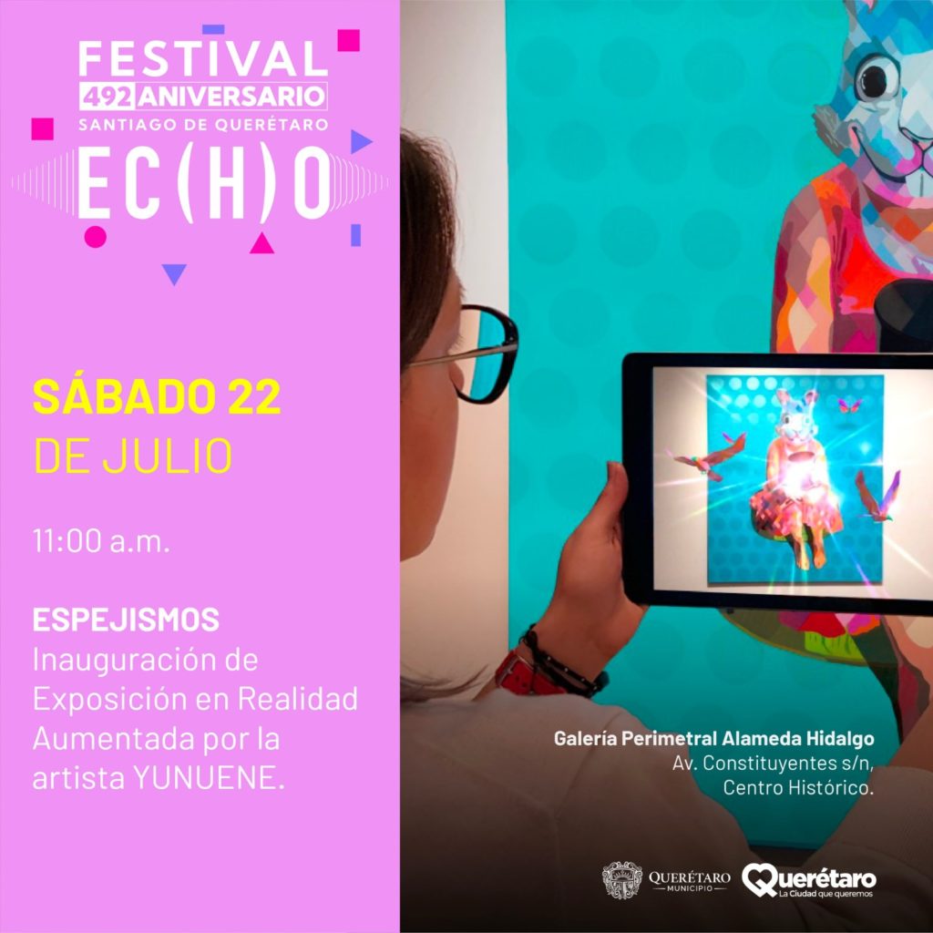 El Festival 492 Aniversario Santiago de Querétaro EC(H)O está por iniciar y trae consigo magnos eventos, entre ellos, la presentación de la instalación de la artista contemporánea reconocida internacionalmente por su arte deconstructivista que incorpora Realidad Aumentada, YUNUENE quien desde la Ciudad de México llega con dos intervenciones artísticas impactantes, que seguramente cautivará a todos los espectadores con su innovadora visión.