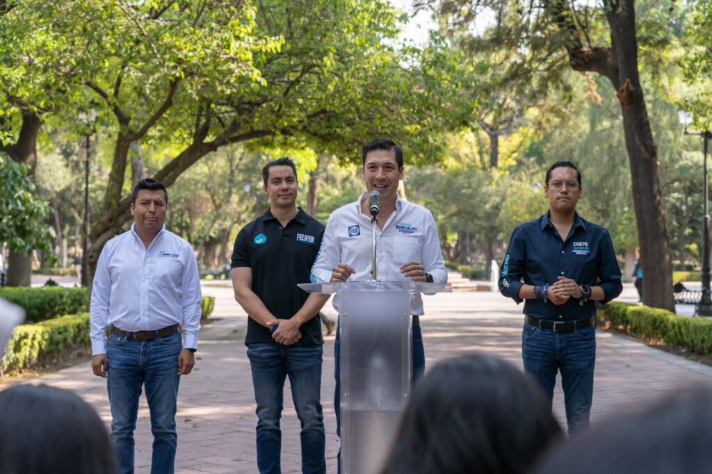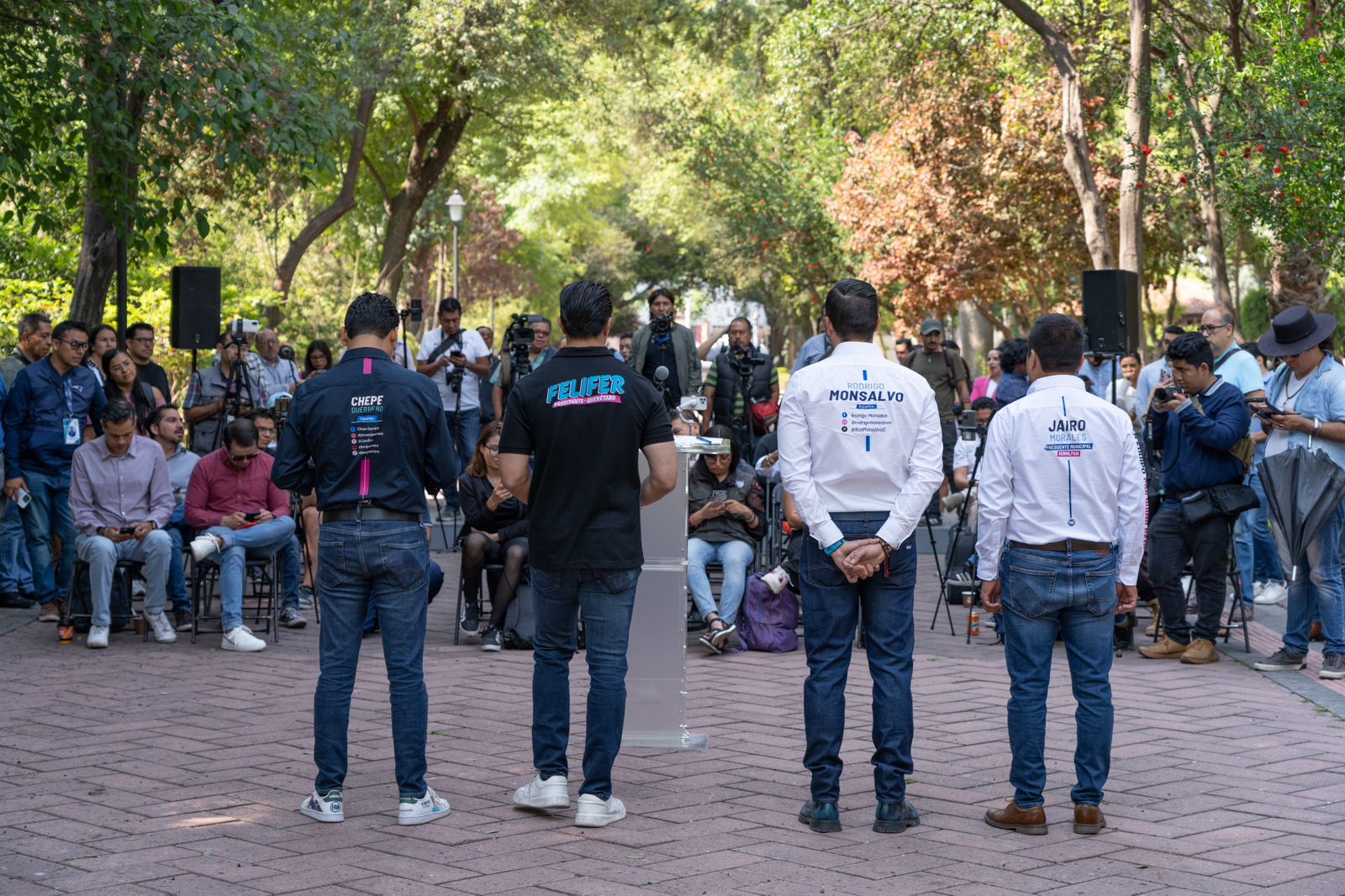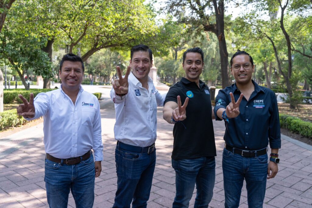 A la rueda de prensa asistieron: el candidato a la presidencia municipal de Querétaro, Felipe Fernando Olvera Macías; de Corregidora, Josué Guerrero Trápala y de Huimilpan, Jairo Morales.