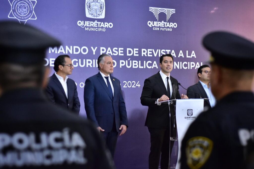 En compañía del Secretario de Seguridad Pública, Juan Luis Ferrusca Ortiz, Felifer Macías anunció la implementación de un nuevo modelo de seguridad pública municipal y reveló que se aplicará un mayor presupuesto, mayor equipamiento, más herramientas y más beneficios administrativos para las y los elementos policiales. Lo cual, repercutirá en una mejor calidad de vida para las y los queretanos.