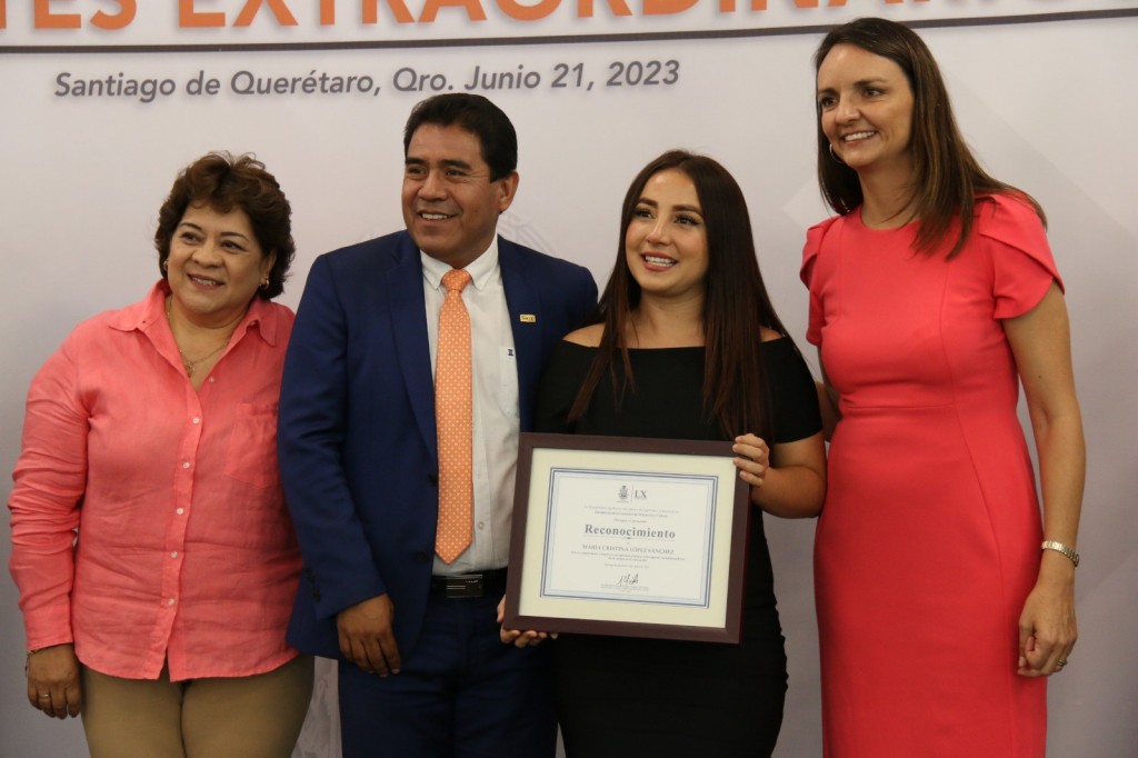 En su oportunidad, la presidenta de la Mesa Directiva, diputada Graciela Juárez Montes, reconoció la labor de la diputada Ana Paola López de recorrer las escuelas de la entidad, para poder descubrir los talentos de las profesoras y profesores queretanos. Afirmó que sin duda la pandemia les dejó grandes aprendizajes y uno de ellos -afirmó- es el reconocer y valorar la gran labor que hacen las y los docentes, “porque el tener a un niño en casa no es fácil y ustedes tienen 20, 30 y hasta 40 alumnos en un solo salón, por eso mi reconocimiento y respeto; es un honor tenerlos hoy en este Congreso local”, resaltó.