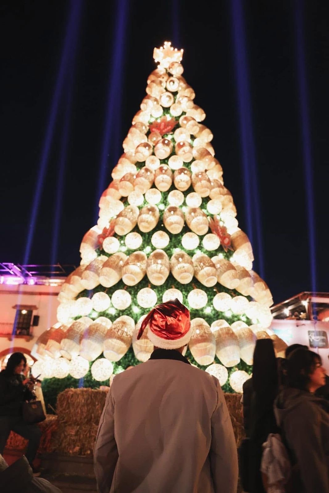 El imponente árbol se basa en la cestería, que es la elaboración manual de canastas o recipientes con mimbre, el cual tiene alrededor de 500 piezas hechas a mano, y para su elaboración participaron alrededor de 35 familias de artesanos, destacando el trabajo de adultos mayores y jóvenes.