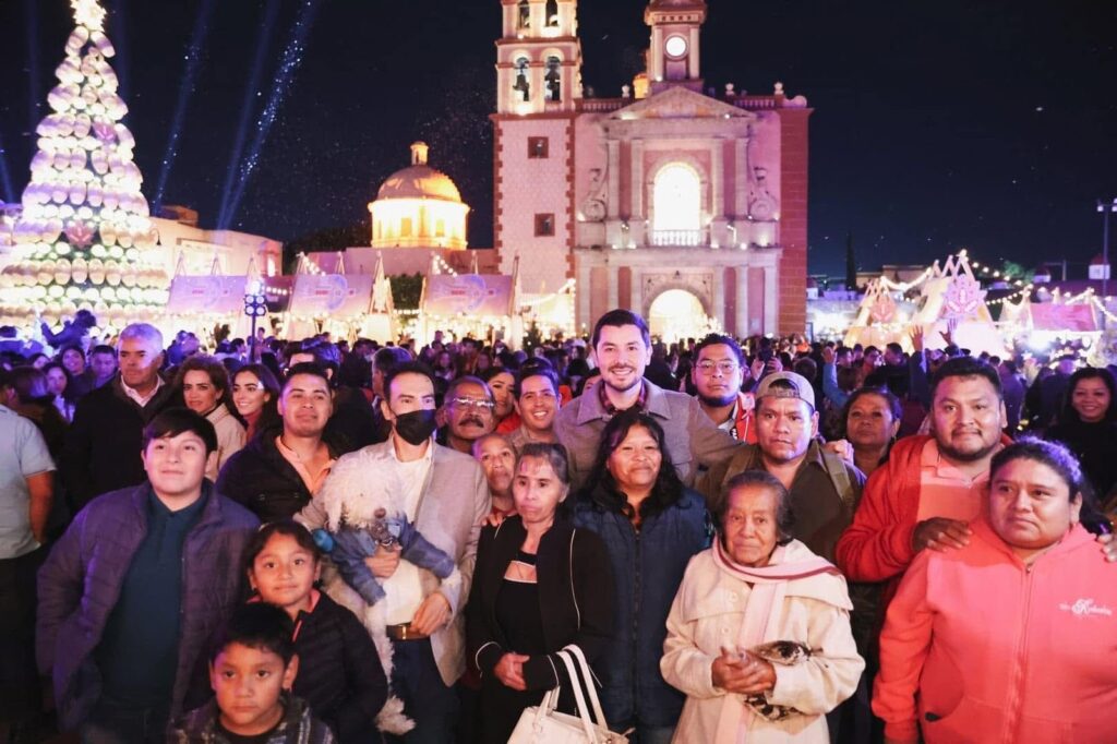 El Presidente Héctor Magaña Renteria, junto a artesanos, inauguraron la Villa Navideña con el encendido del árbol artesanal y monumental, en el Jardín Principal de Tequisquiapan.