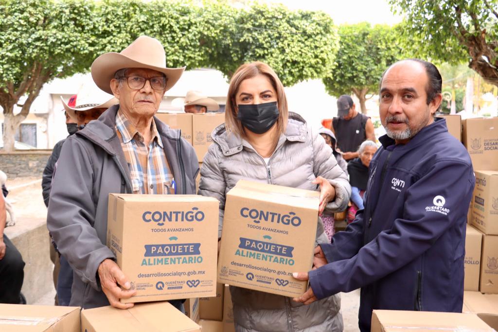 encabezó la entrega de apoyos alimentarios del Programa Contigo en las localidades de Escanelilla y Ahuacatlán de Guadalupe. Acompañada por el personal de SEDESOQ, se distribuyeron despensas bimestrales a 44 beneficiarios en Escanelilla y a 119 personas en Ahuacatlán de Guadalupe, abarcando diversas comunidades. Durante el evento, Ramírez Plaza expresó su agradecimiento al Gobernador Mauricio Kuri y a la Secretaria de Desarrollo Social de Querétaro, Diana Yadira Pérez Mejía, por el constante apoyo que ha permitido llevar estos beneficios a Pinal de Amoles.