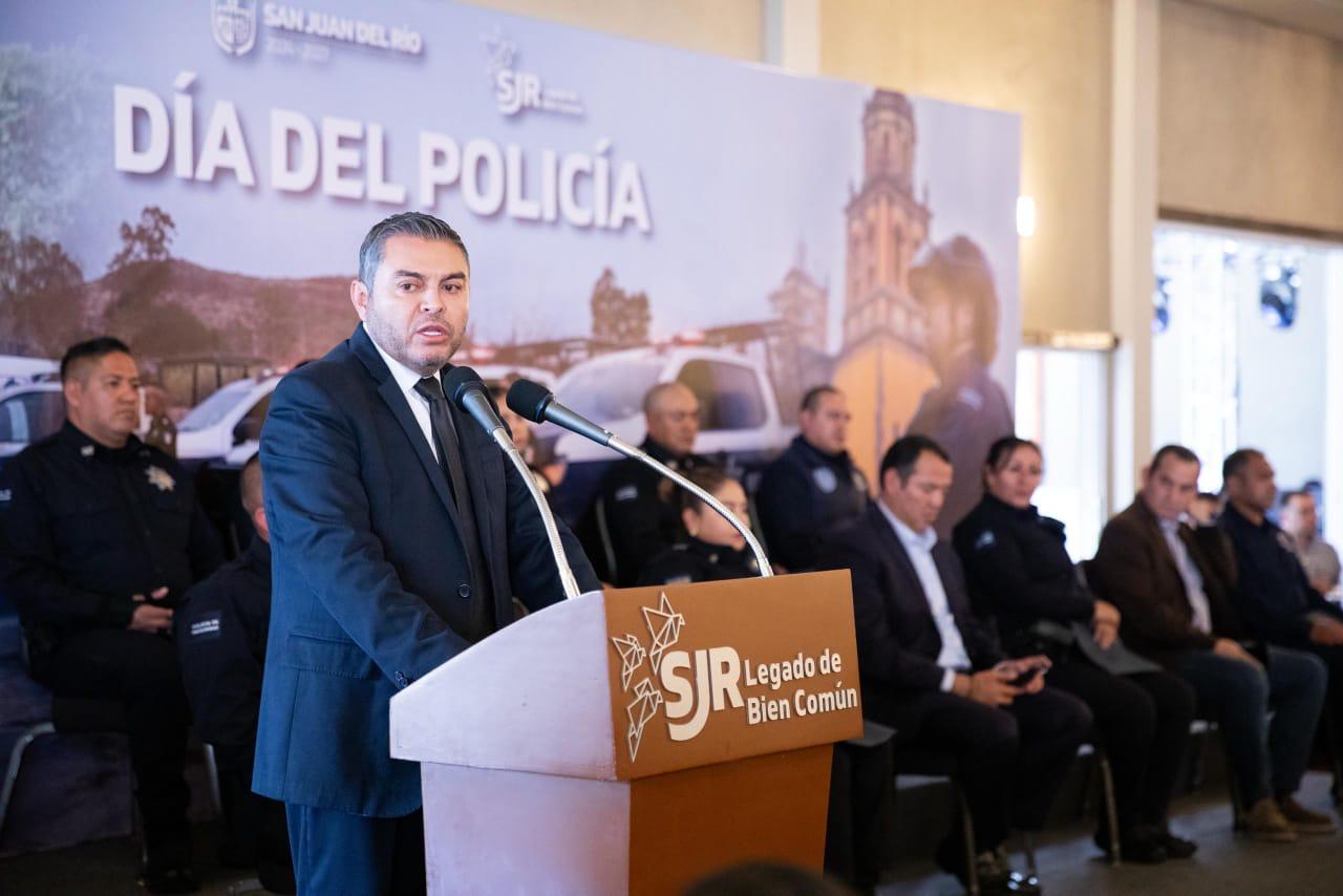 - El presidente municipal de San Juan del Río, Roberto Cabrera Valencia, destacó que las y los policías defienden a las familias sanjuanenses y construyen un Legado de Bien Común.