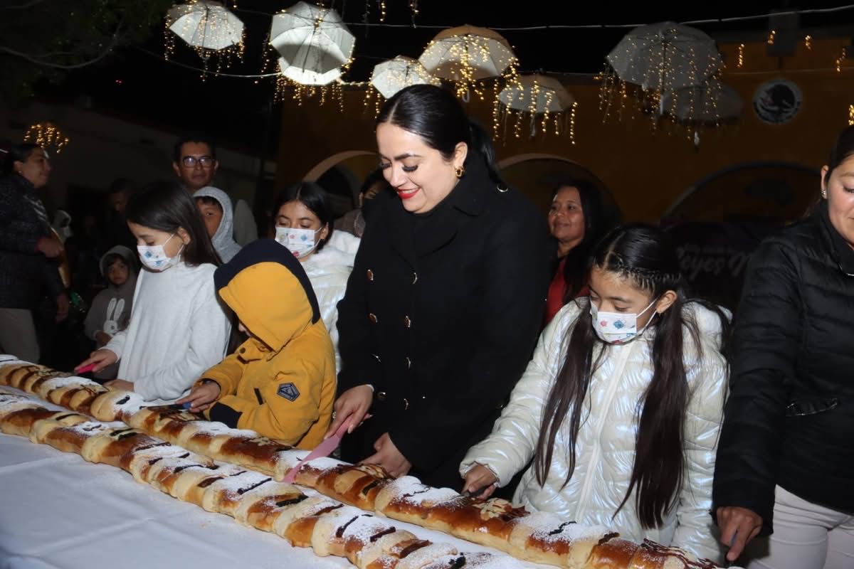 En su mensaje la Alcaldesa: Antes que nada quiero desear a todos y cada uno de ustedes un feliz año nuevo lleno de prosperidad y salud, es mi primera rosca que puedo compartir con todos ustedes, deseo de todo corazón que hoy la ilusión siga y que la alegría reine en sus hogares con la llegada de los Reyes Magos.