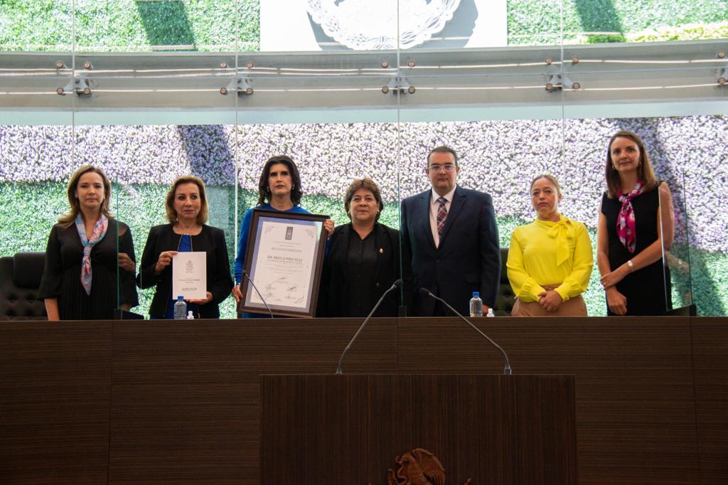 Por su parte, el diputado Guillermo Vega Guerrero, presidente de la Junta de Coordinación Política entregó a la presidenta del Tribunal Superior de Justicia, Mariela Ponce Villa un reconocimiento por su Informe de Actividades al frente del Poder Judicial, y por su destacada labor en la salvaguarda y construcción de un sistema de justicia sólido para los queretanos.