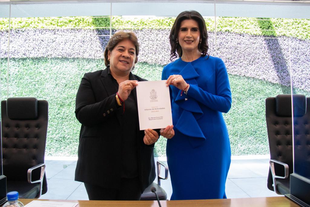 Acto seguido la magistrada Mariela Ponce Villa entregó a la presidenta de la Mesa Directiva, diputada Graciela Juárez Montes, la versión escrita del Informe 2022-2023 del Poder Judicial del Estado.