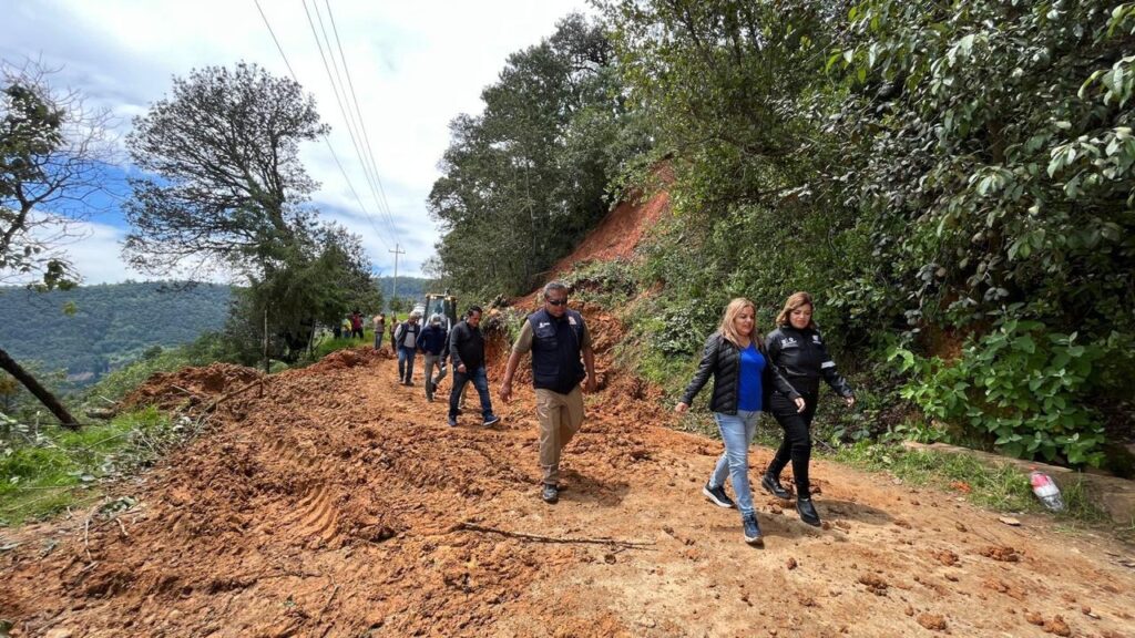 La presidenta municipal de Pinal de Amoles, Lupita Ramírez Plaza, junto con Sonia Carrillo Rosillo, titular de la Comisión Estatal de Infraestructura, realizaron un recorrido por las zonas afectadas de Magueycitos y Temazcales para supervisar las labores de remoción de escombros tras el deslave ocurrido en la carretera de terracería de esta zona.