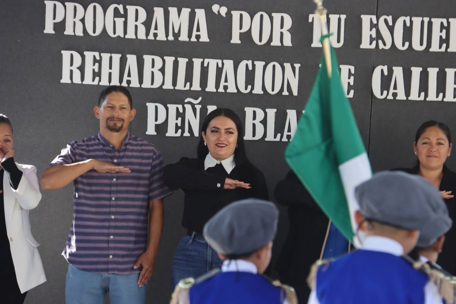Mensaje de la Presidenta: tengo un gran compromiso por la educación, hoy estamos aquí para dar el arranque de la rehabilitación de acceso porque el contar con espacios dignos motiva a los pequeñitos asistir con mayores ganas. Además hago entrega del material que me solicitaron para continuar con los trabajos en su escuelita.