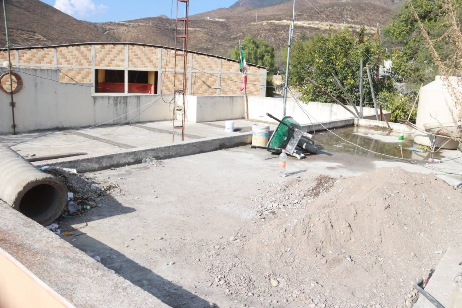 Dichos trabajos contemplan la renivelación de superficie de azotea, impermeabilizante, bajadas pluviales, rehabilitación de instalación hidráulica y aplicación de pintura para la Delegación, así como instalación de 3 puertas de herrería, cambio de láminas en mal estado, colocación de canalón, colocación de bajadas de agua pluvial así como luminarias para el auditorio.