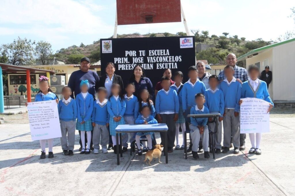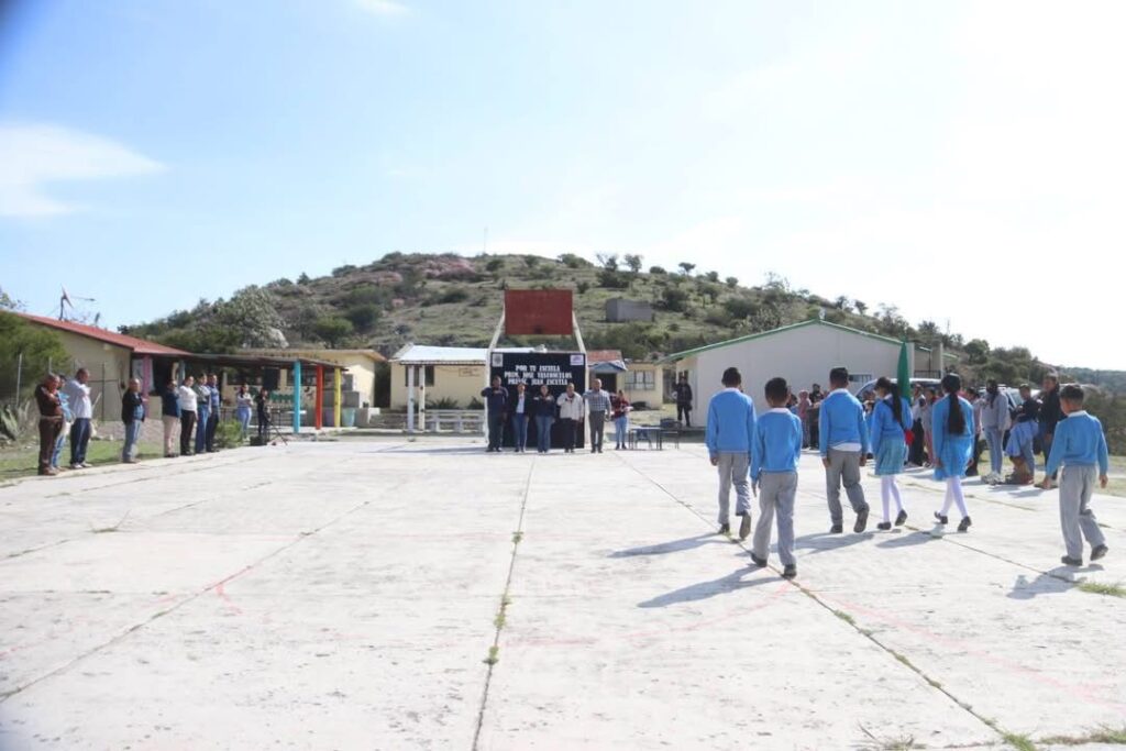 La jornada inició con Honores a la Bandera, fomentando el respeto a nuestros lábaros patrios. Posteriormente, se realizó la entrega de 14 butacas para la primaria y una mesa de trabajo para el preescolar, que mejora las condiciones de los espacios educativos.