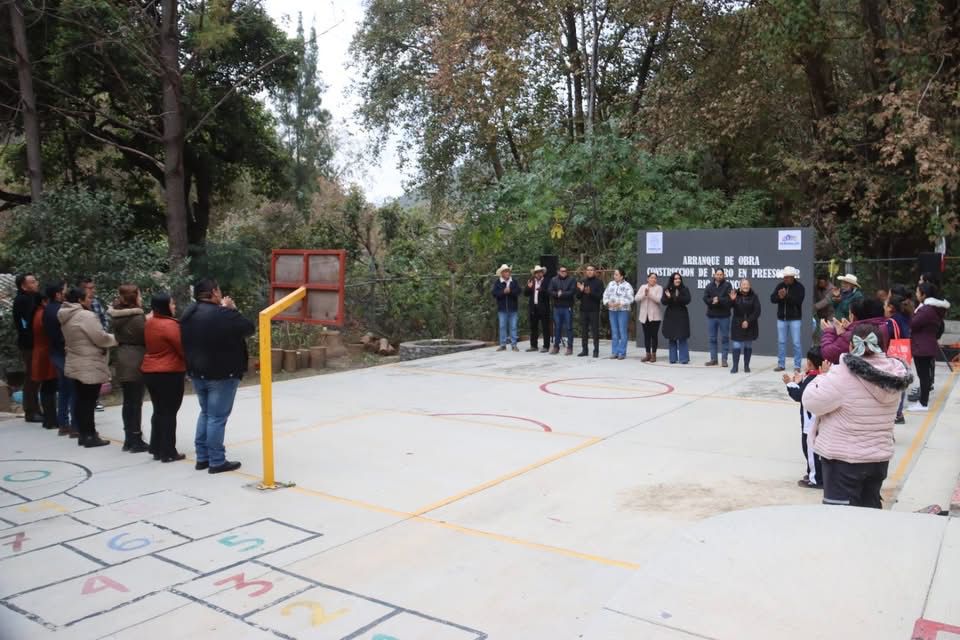 El motivo de la visita fue para arrancar la obra Construcción de muro en preescolar comunitario Miguel Hidalgo.