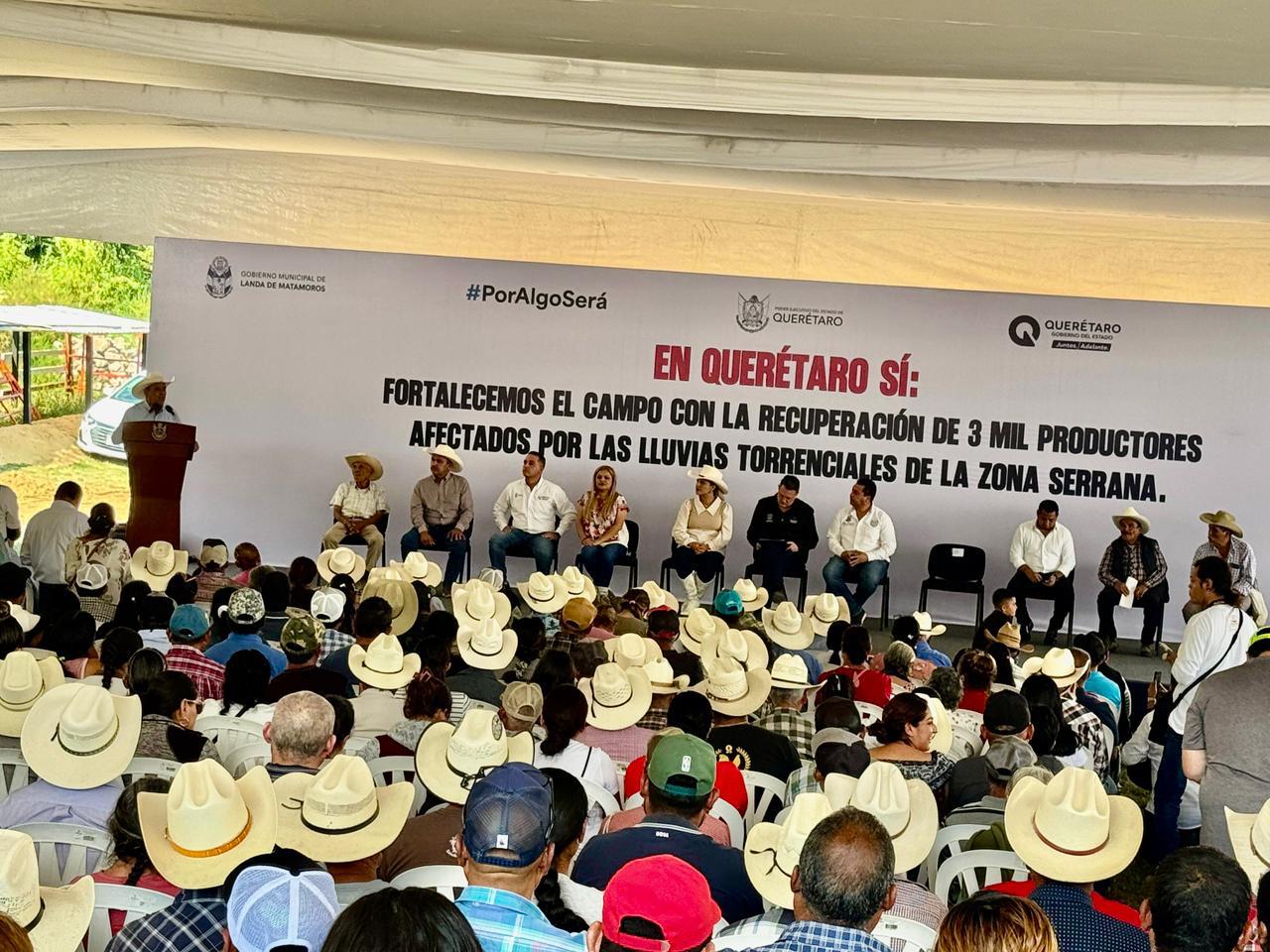 La Presidenta Municipal de Pinal de Amoles, Lupita Ramírez Plaza, acompañó al Gobernador del Estado, Mauricio Kuri, y al Secretario de Desarrollo Agropecuario, Rosendo Anaya Aguilar, durante la entrega de apoyos por contingencia a productores de la zona serrana, realizada en el municipio de Landa de Matamoros.