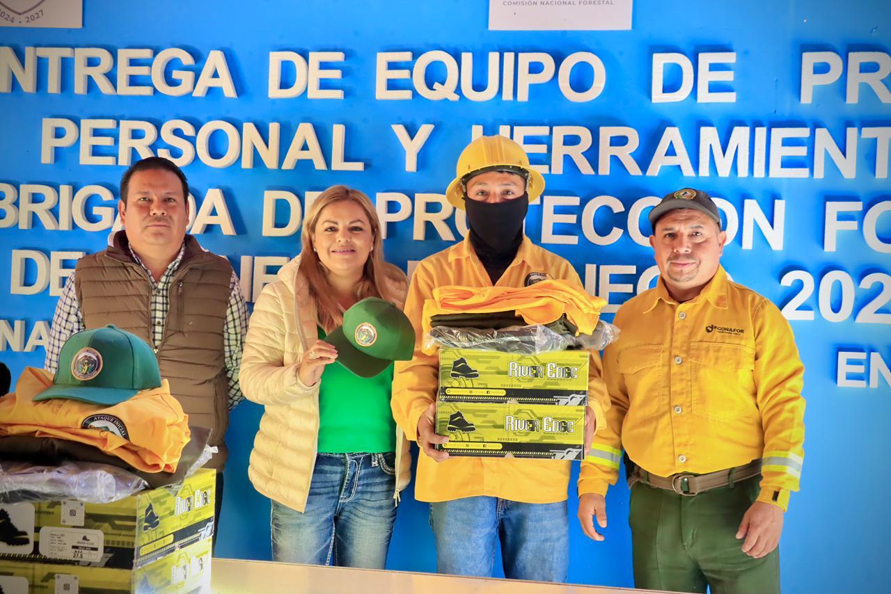 La brigada, conformada por 10 combatientes forestales, recibió equipo de protección personal y herramientas esenciales para garantizar su seguridad y eficacia en las tareas de prevención y combate de incendios.
