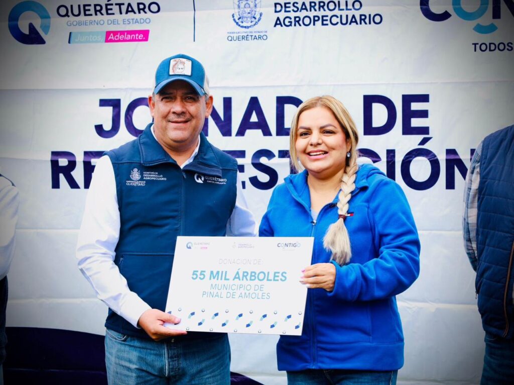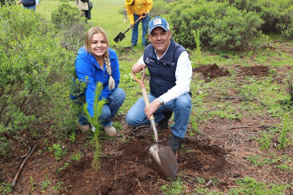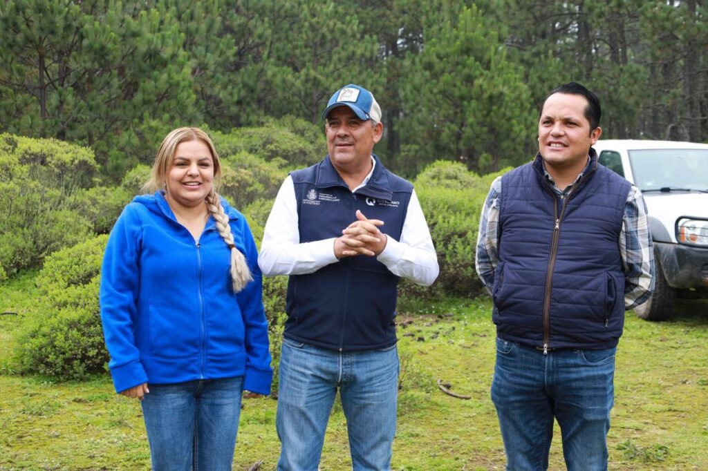 acompañada por el Ing. Iván Zárate y por autoridades estatales como Juan Carlos Garduño Mancebo del Castillo, jefe del Departamento Forestal en la SEDEA; el Ing. Rosendo Anaya Aguilar Secretario de Desarrollo Agropecuario en el Estado; y el ingeniero Gelacio Lemus Santos, jefe de Área de Fomento y Protección Forestal. Esta acción forma parte de la campaña de reforestación 2025, que contempla la plantación de 5,000 ejemplares de Pinus rudis en una superficie de 12.5 hectáreas de esta zona estratégica para la recarga de mantos acuíferos.