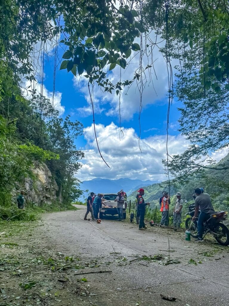 La jornada tuvo lugar en el tramo que conecta la Delegación de Agua Zarca con la localidad de Camarones, donde autoridades y ciudadanía trabajaron hombro con hombro para limpiar maleza y remover derrumbes que afectaban el camino y las cunetas de la carretera.