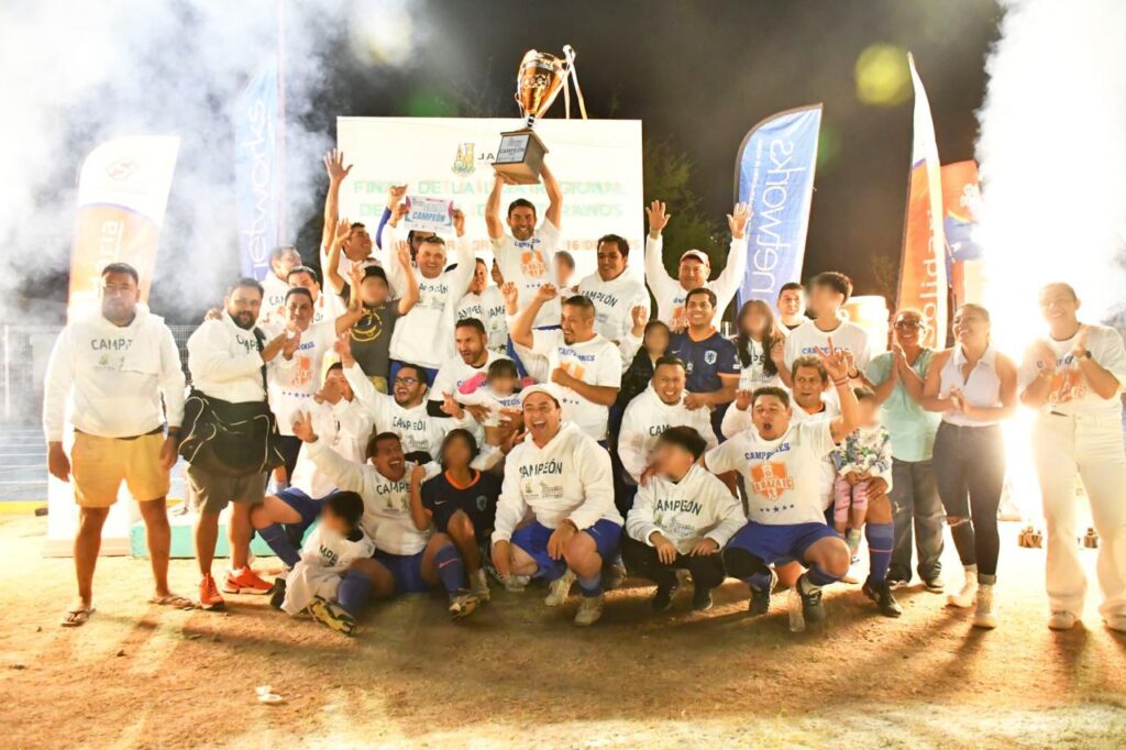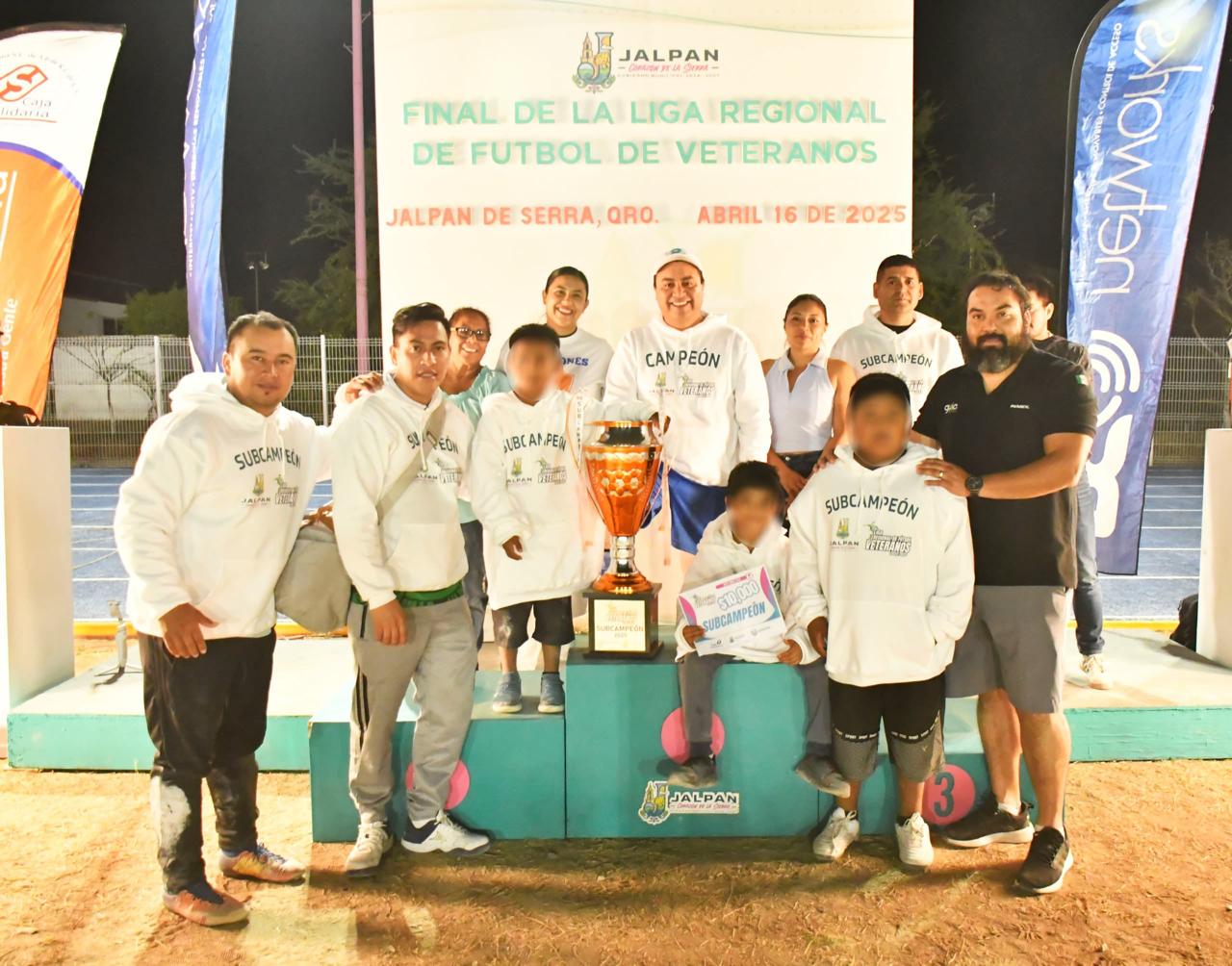 La noche de ayer, con gran entusiasmo se llevó a cabo la ceremonia de premiación de la Liga Regional de Fútbol Veteranos, donde el equipo La Raza se coronó como campeón del torneo. El acto fue encabezado por el Presidente Municipal, Rubén Hernández, quien estuvo acompañado por la Presidenta del Patronato del SMDIF, Ceci Ugalde; las regidoras Rosario Landaverde y Efigenia Reséndiz; así como el titular de Deportes, Levi Trejo.