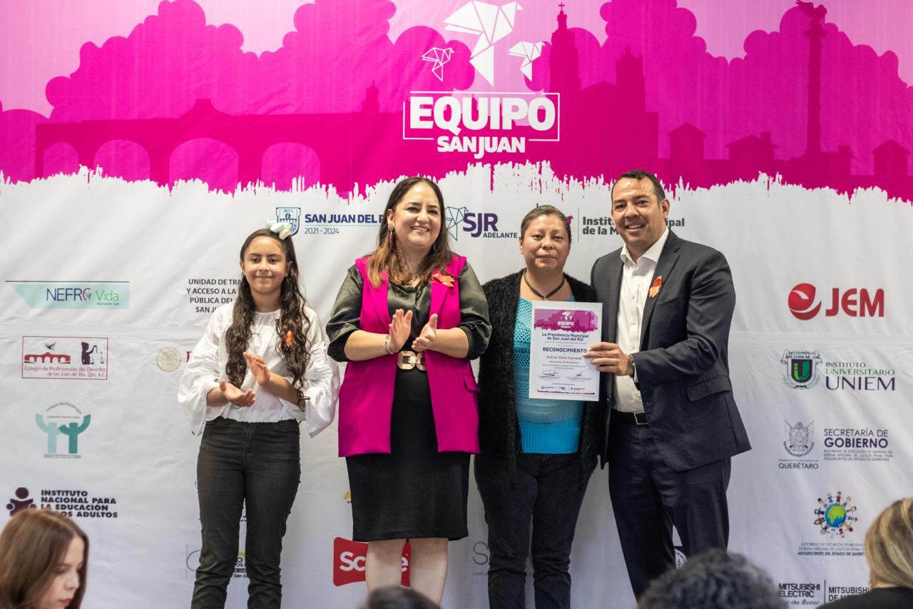 - El presidente municipal de San Juan del Río, Roberto Cabrera Valencia, entregó reconocimientos a las 47 instituciones públicas y privadas que tienen convenio con el IMM, así como a talleristas y conferencistas.