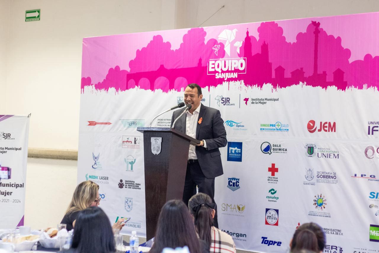 La visión que tiene el municipio de San Juan del Río es la unión familiar, la unión de las comunidades y de la ciudadanía, dijo el presidente municipal sanjuanense, Roberto Cabrera Valencia, en su mensaje con motivo de la entrega de reconocimientos a 47 instituciones de los sectores público y privado con las que ha firmado convenios el Instituto Municipal de la Mujer (IMM), así como a talleristas y conferencistas que han colaborado con el organismo.