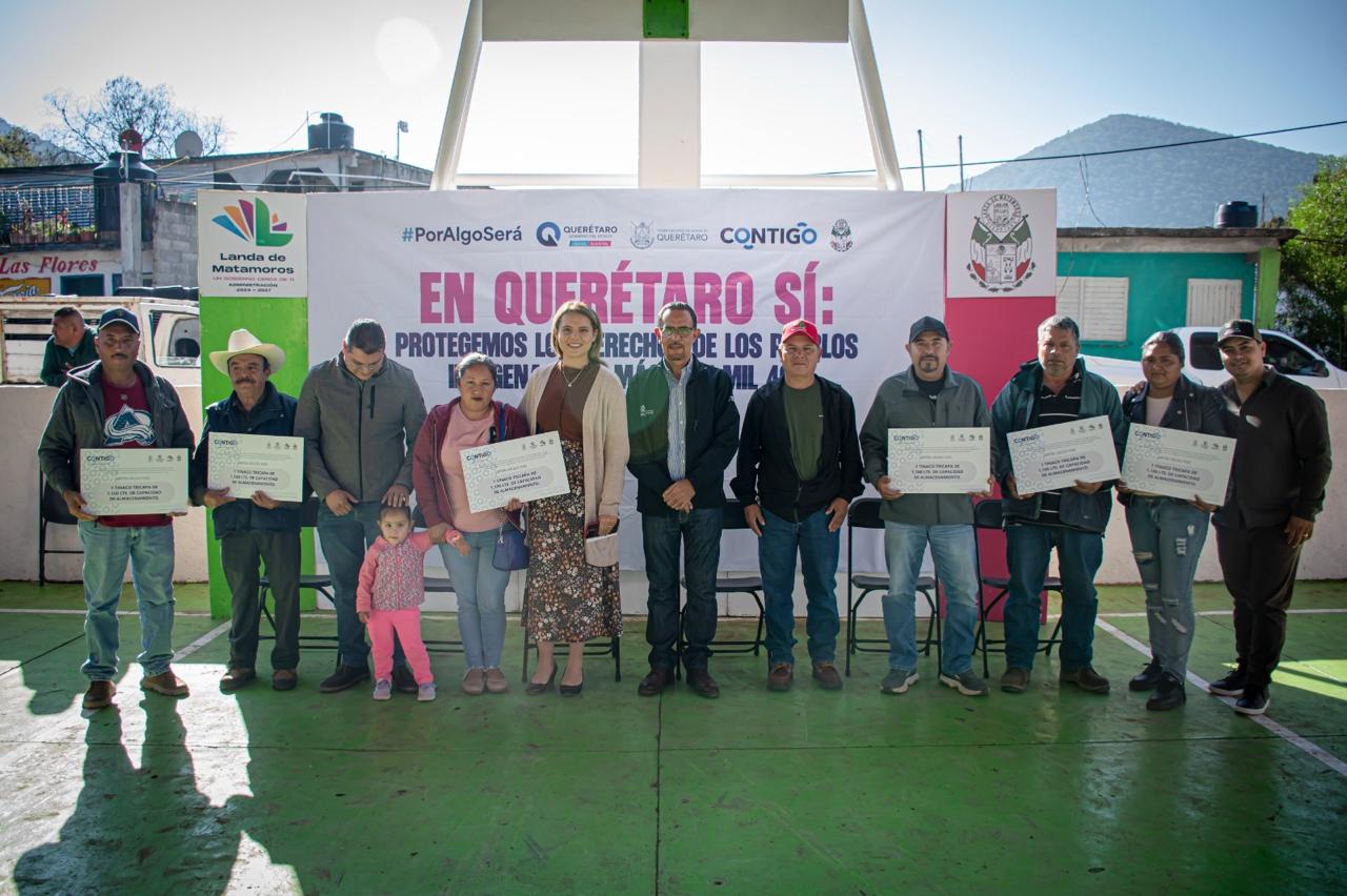 Con el firme compromiso de atender las necesidades de la población landense, la Presidenta Municipal, Yuni Benítez, encabezó la entrega de apoyos del programa “Contigo para el Desarrollo Integral de los Pueblos Indígenas de Querétaro” 2025, mediante el cual se otorgaron tinacos con capacidad de 1,100 litros como apoyo directo a las familias beneficiarias. Esta acción impacta de manera positiva en la economía y calidad de vida de más de 600 familias de la Delegación de Tres Lagunas y de comunidades aledañas.