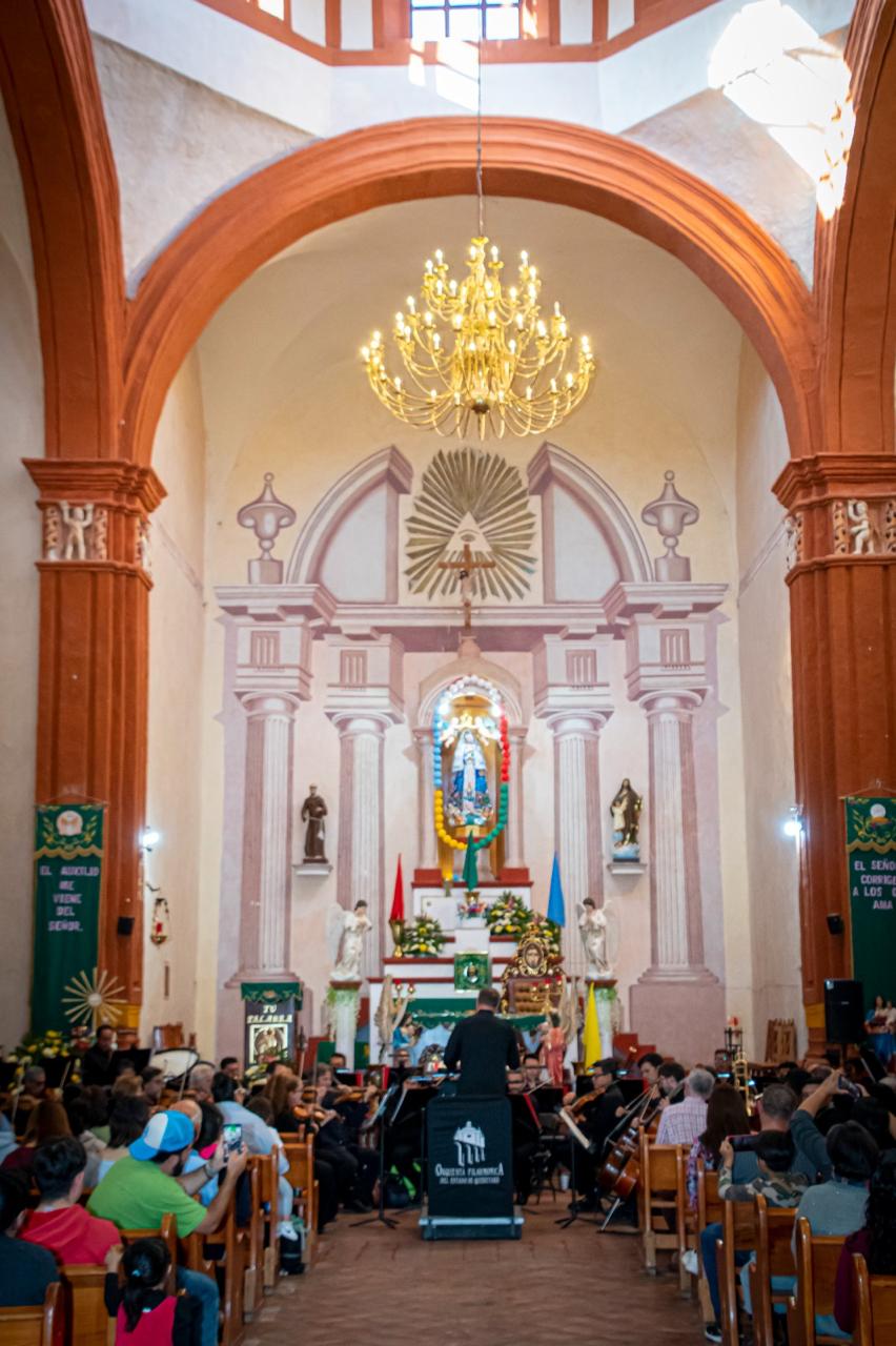 Teniendo como escenario la Misión de Santa María del Agua de Landa, la Orquesta Filarmónica de Querétaro ofreció un concierto que las familias landenses pudieron disfrutar, con un repertorio musical que resaltó el talento y la pasión de cada uno de sus integrantes.