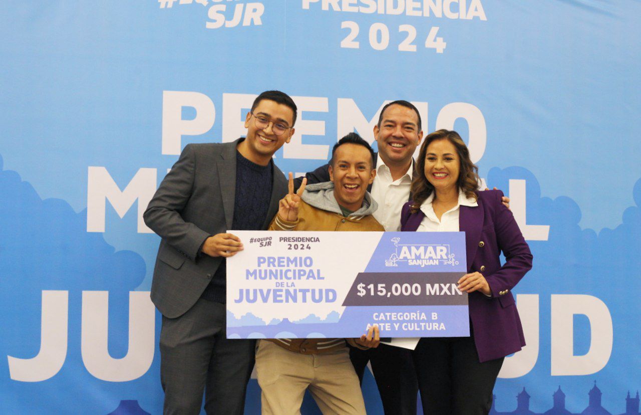 El presidente municipal de San Juan del Río, Roberto Cabrera Valencia, en equipo con el director municipal de la Juventud, Luis Alberto Galván Hernández, entregó el Premio Municipal de la Juventud 2024, que tiene como objetivo reconocer a las y los jóvenes cuya conducta, creatividad, compromiso, iniciativa o dedicación es ejemplo para la sociedad.