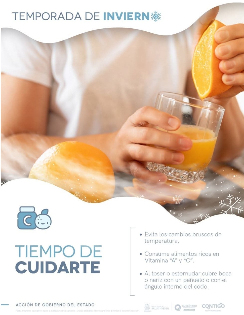 La Secretaría de Salud de Querétaro ante este panorama emite las siguientes recomendaciones para la población en general, con el objetivo de prevenir infecciones respiratorias agudas durante la temporada invernal:
