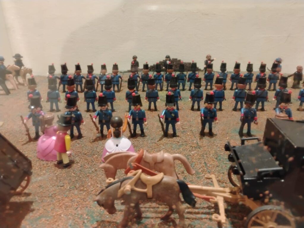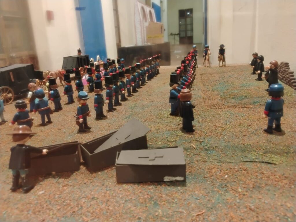 La exposición, que se presenta en el marco del Festival Querétaro Histórico, incluye cinco dioramas hechos a escala con los muñecos de Playmobil con los temas La batalla del Sangremal, La conspiración de Querétaro, La inauguración del Acueducto, El fusilamiento de Maximiliano y La promulgación de la constitución de 1917.