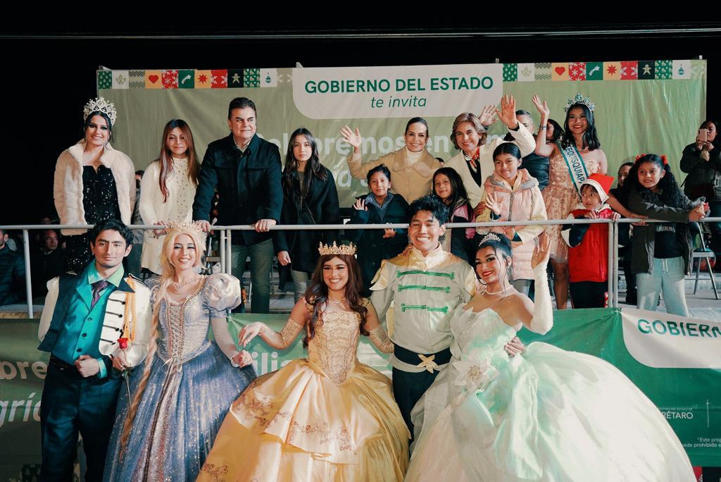 Durante el evento se distribuyeron palomitas y pelotas luminosas a la niñez de Tequisquiapan, quienes con alegría disfrutaron el desfile navideño en compañía de sus familias.