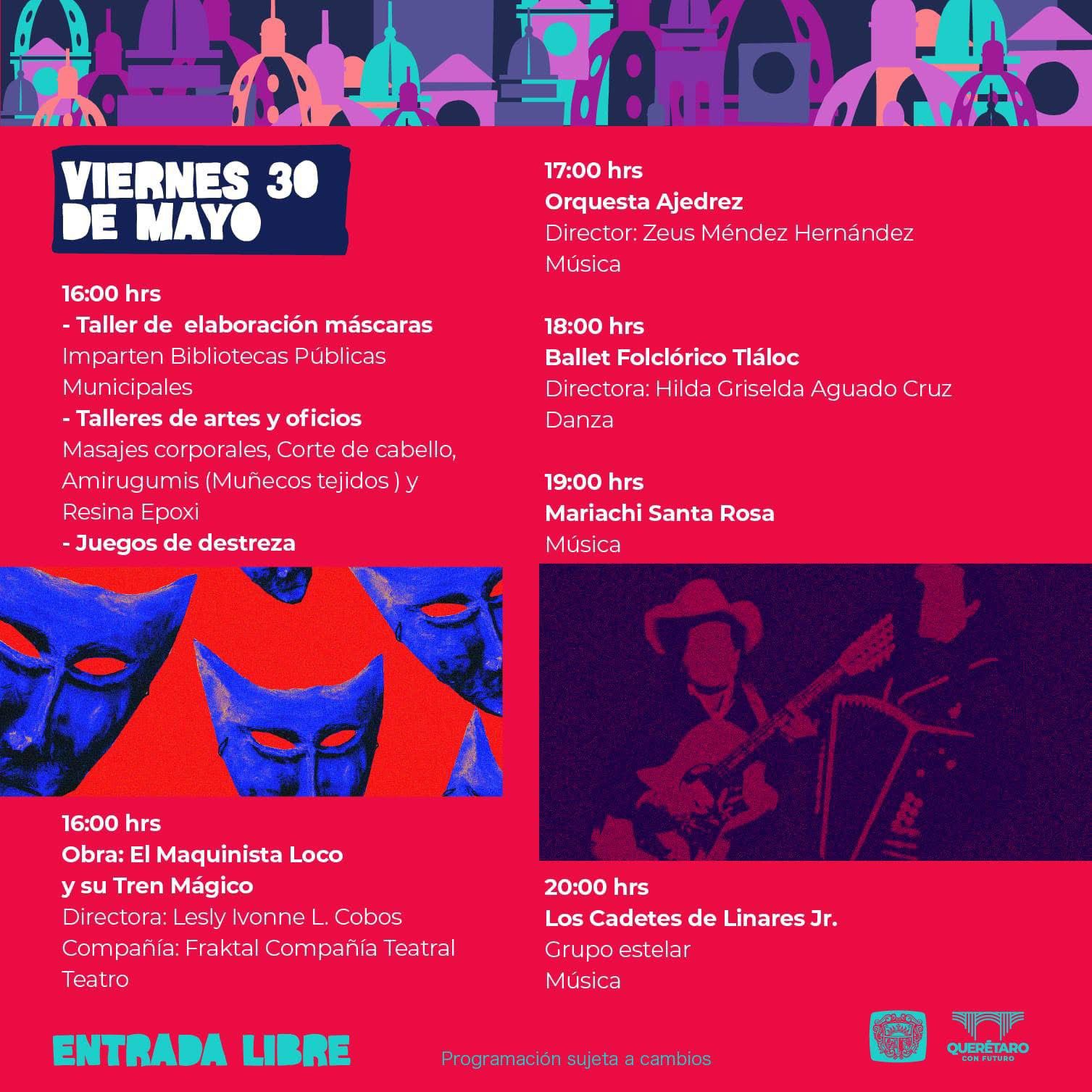 Toda la programación está vigente en las redes sociales del Municipio de Querétaro y la Secretaría de Cultura del Municipio de Querétaro.