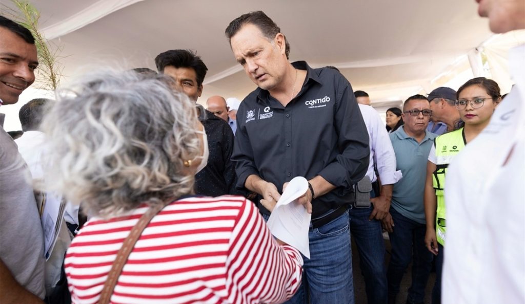 El gobernador, Mauricio Kuri González, en compañía del presidente municipal de El Marqués, Enrique Vega Carriles, encabezó la jornada “Aquí Contigo” en el Parque Ciudad Joven, del fraccionamiento Los Héroes, donde escuchó las necesidades de las y los habitantes de la zona, principalmente en materia de educación, salud, agua, apoyos sociales y seguridad.