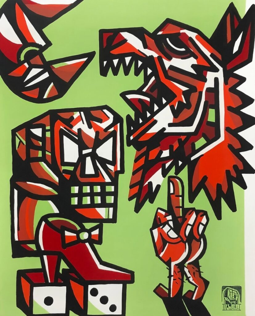 A través de los años Nagual ha encontrado la forma para reinventar su estilo gráfico y mantenerlo siempre fresco, haciéndolo más robusto y variado, con lo que logra una fuerte amalgama con diferentes materiales, soportes y tiempo.