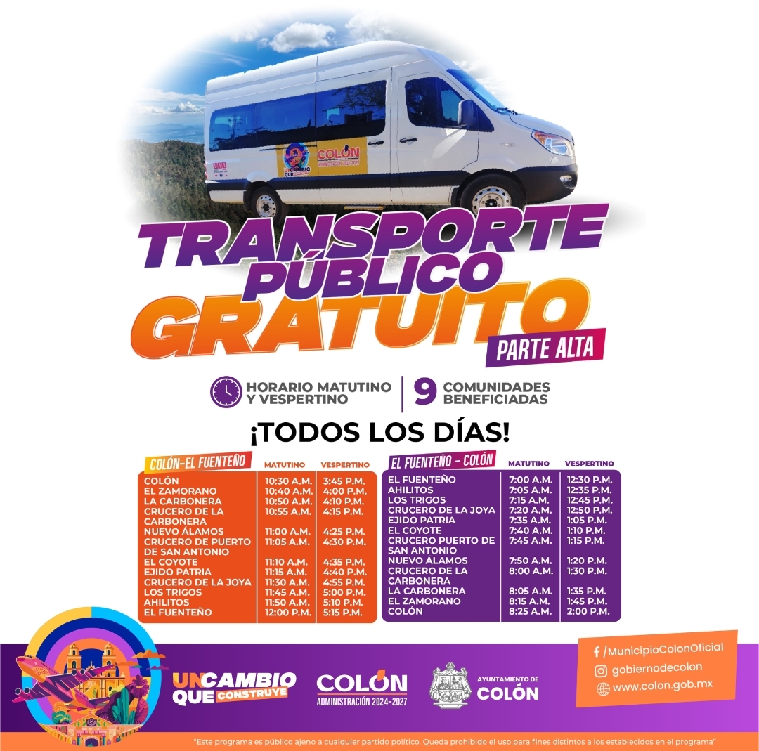 ● Transporte Público Gratuito para más de 4 mil colonenses de 9 comunidades.