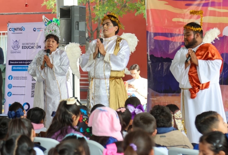 La titular de la SEDEQ, Martha Soto, expresó que esta puesta en escena, interpretada por jóvenes del grupo de teatro de la Universidad Autónoma de Querétaro (UAQ), está dirigida a estudiantes, papás, mamás y comunidad educativa para llevar el arte y la tradición a las familias durante estas épocas decembrinas.