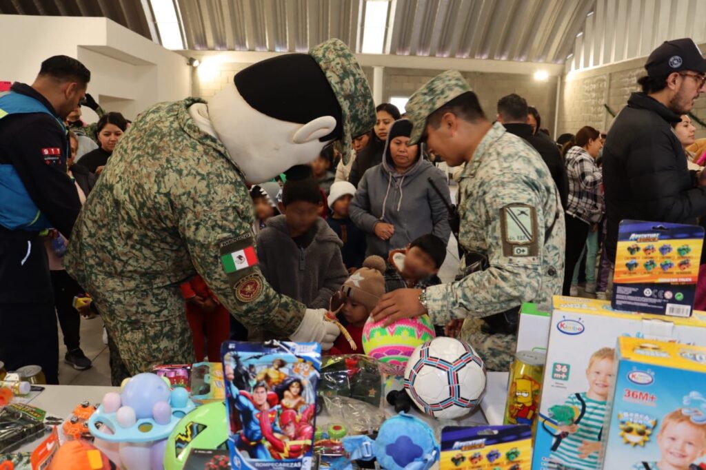 * Acompañan a esta entrega de juguetes personal del Ejército Mexicano y Protección Civil Municipal y del Estado.