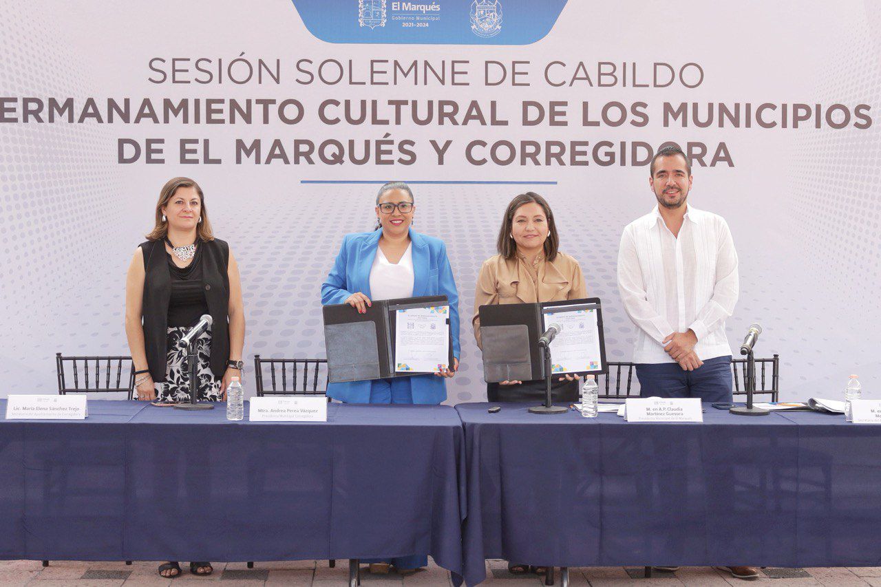 Con la presencia de la alcaldesa de Corregidora, Andrea Perea Vázquez y los miembros de su Ayuntamiento, el Acuerdo para el Hermanamiento Cultural de ambos municipios, fue aprobado de manera unánime por los integrantes del Cabildo de El Marqués.