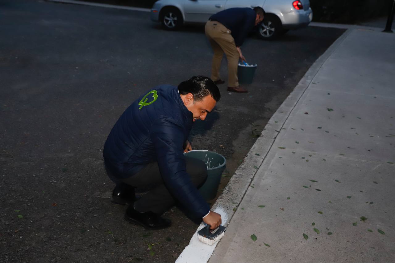 Al apoyar en las labores de pintura de guarniciones y la reforestación de áreas verdes, Luis Nava referendó su compromiso de escuchar, trabajar y resolver, con el objetivo de hacer equipo con la ciudadanía y así mejorar y cuidar los espacios públicos.
