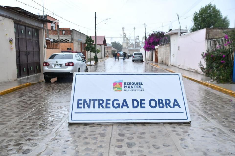 La Alcaldesa de Ezequiel Montes, Lupita Pérez Montes, en compañía de autoridades municipales, hizo entrega de la calle Agustín Melgar, ubicada en la localidad de La Laguna.
