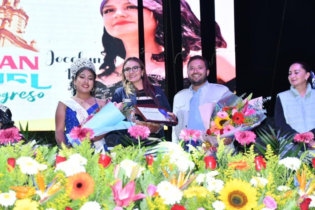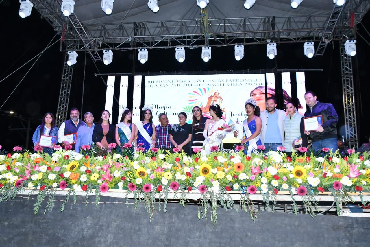 Felicitó a Joselyn Primera, reina electa en esta edición e invitó a que represente dignamente a Villa Progreso en donde quiera que vaya; compartiendo la importancia de las artesanías, la gastronomía y del templo de San Miguel.