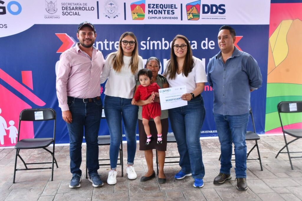 Está mañana la Alcaldesa de Ezequiel Montes, Lupita Pérez Montes, en compañía de la Lic. Diana Yadira Pérez Mejía, Secretaria de Desarrollo Social, el C. Julio César Domínguez Terán, Director de Desarrollo Social del Municipio y el C. Felipe Antonio Herrera Cabrera, Director de Desarrollo Comunitario, llevaron a cabo la entrega del programa estatal “Para Una Vivienda Digna”, en su segunda etapa.