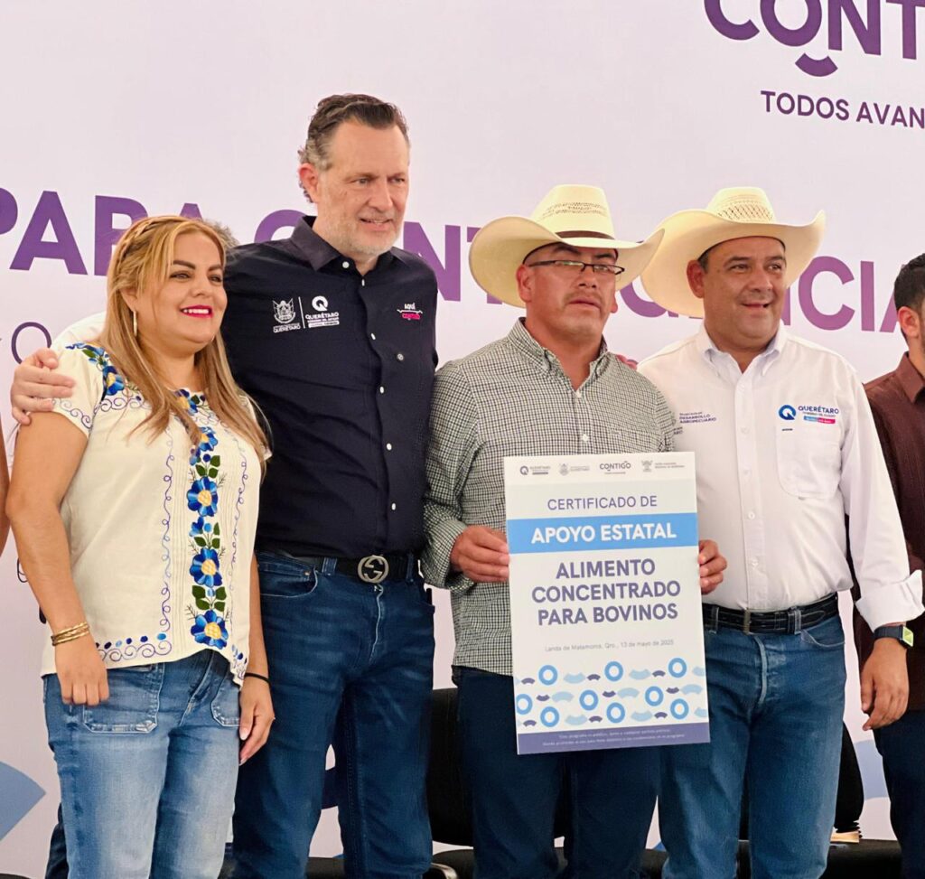 Esta tarde, la Presidenta Municipal de Pinal de Amoles, Lupita Ramírez Plaza, acompañó al Gobernador del estado, Mauricio Kuri González, en el arranque regional de la Estrategia para Contingencias Agropecuarias, por parte de la SEDEA que encabeza el Secretario Rosenda Anaya. Esta entrega es realizada con el objetivo de apoyar a productores ante las afectaciones por sequía. Durante el evento, se realizó la entrega simbólica de alimento concentrado para bovinos, marcando el inicio de una serie de apoyos que llegarán al municipio serrano.