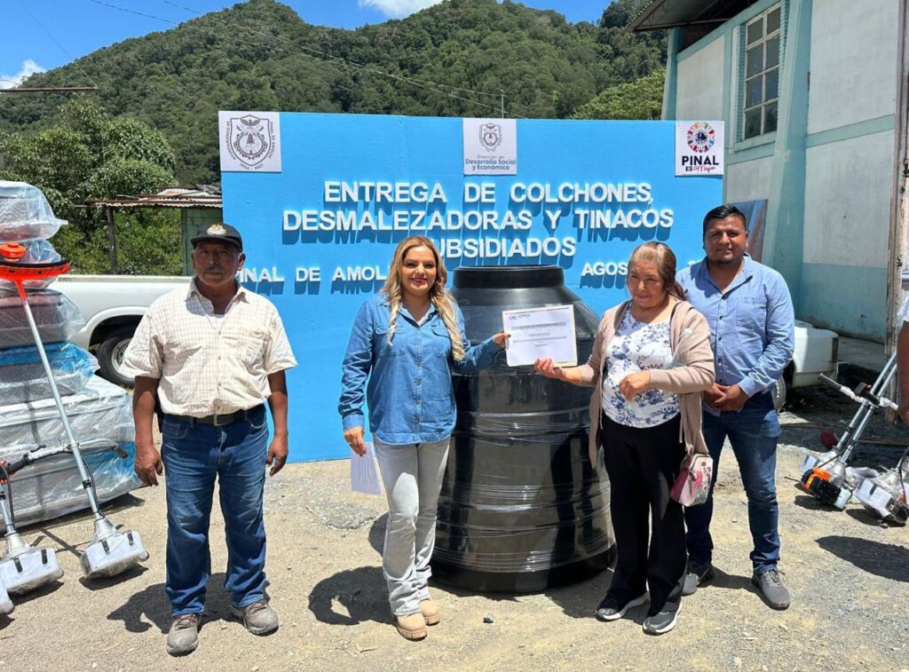 La Presidenta Municipal de Pinal de Amoles, Lupita Ramírez Plaza, encabezó la entrega de colchones Restonic, desmalezadoras STIHL y tinacos MAXPLAST a bajo costo, en coordinación con el Departamento de Desarrollo Social y Económico.