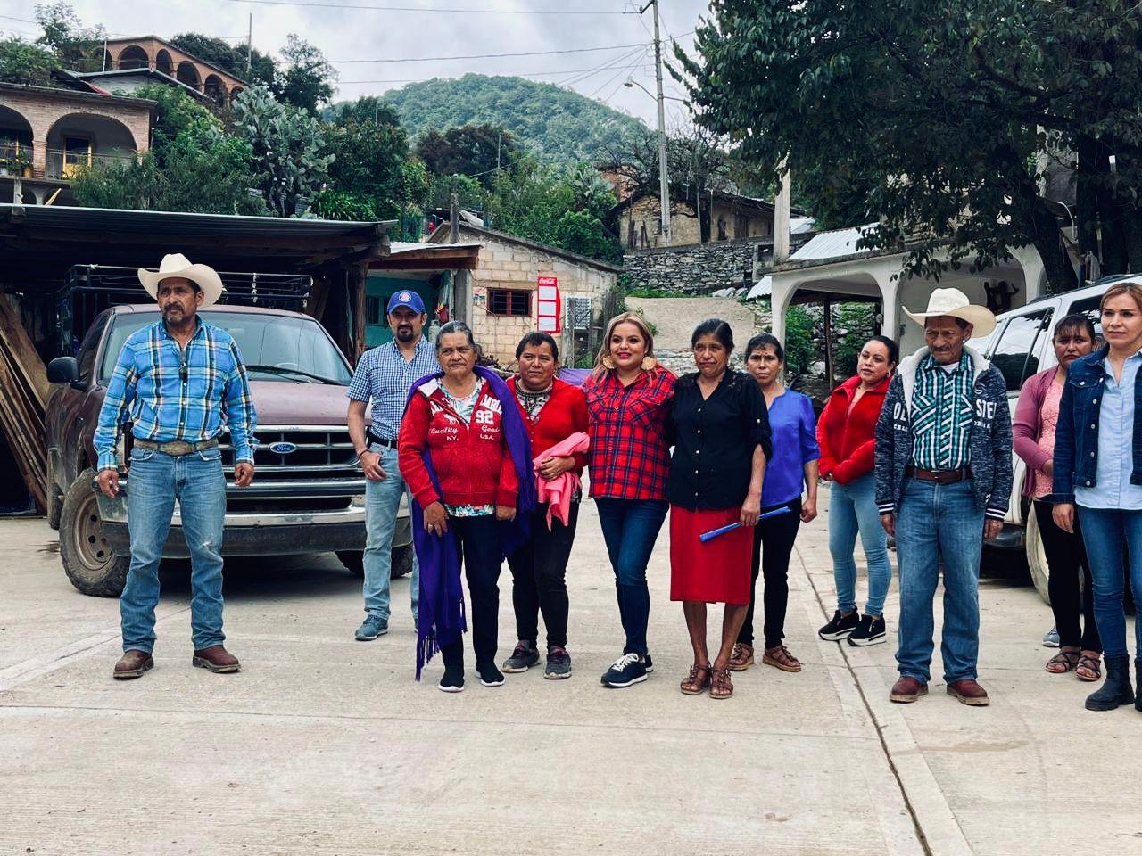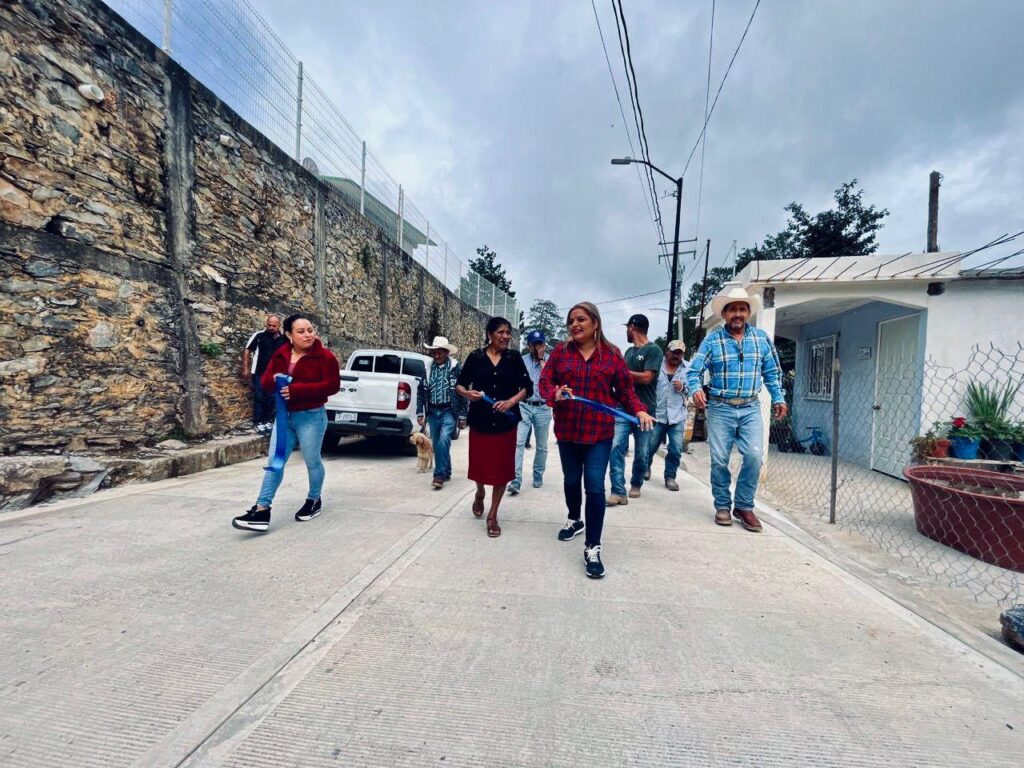 La presidenta municipal de Pinal de Amoles, Lupita Ramírez Plaza, junto con el presidente del SMDIF, Iván Zárate Muñoz, realizaron la entrega formal de la primera etapa de rehabilitación de la calle principal en la comunidad de Los Pinos.