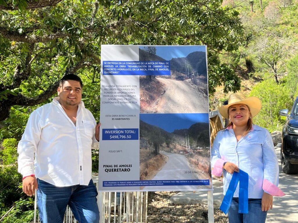 La presidenta municipal de Pinal de Amoles, Lupita Ramírez Plaza, entregó la rehabilitación de una rampa con concreto hidráulico en la comunidad de La Meca, un proyecto que contó con una inversión de 498 mil 796 pesos.