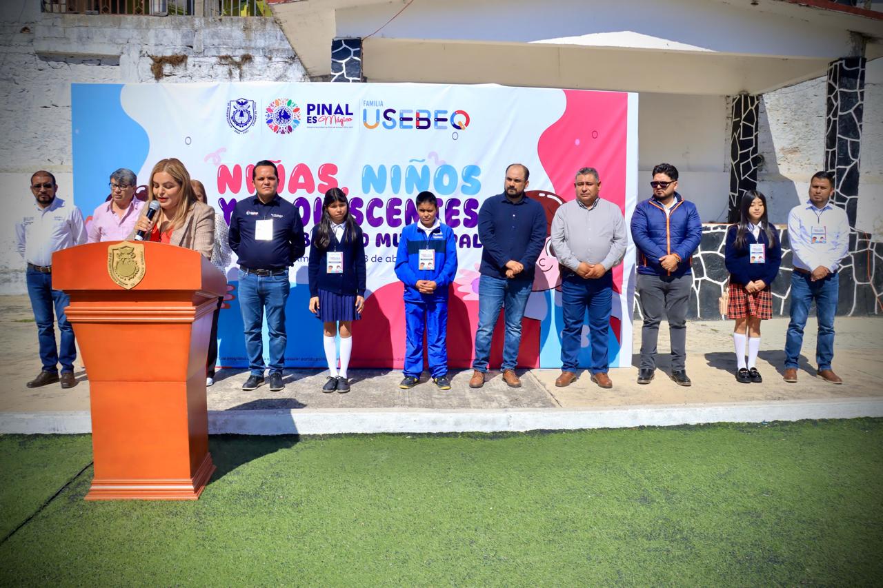 Esta mañana, el Gobierno Municipal de Pinal de Amoles, encabezado por la Presidenta Municipal Lupita Ramírez Plaza, dio la bienvenida a los alumnos que participan en niñas, niños y adolescentes en el Gobierno Municipal 2025. El evento inició con un desayuno, seguido por la realización de honores a la bandera. Con estas acciones se fortalece el compromiso del municipio con la participación activa de las nuevas generaciones en la vida cívica.